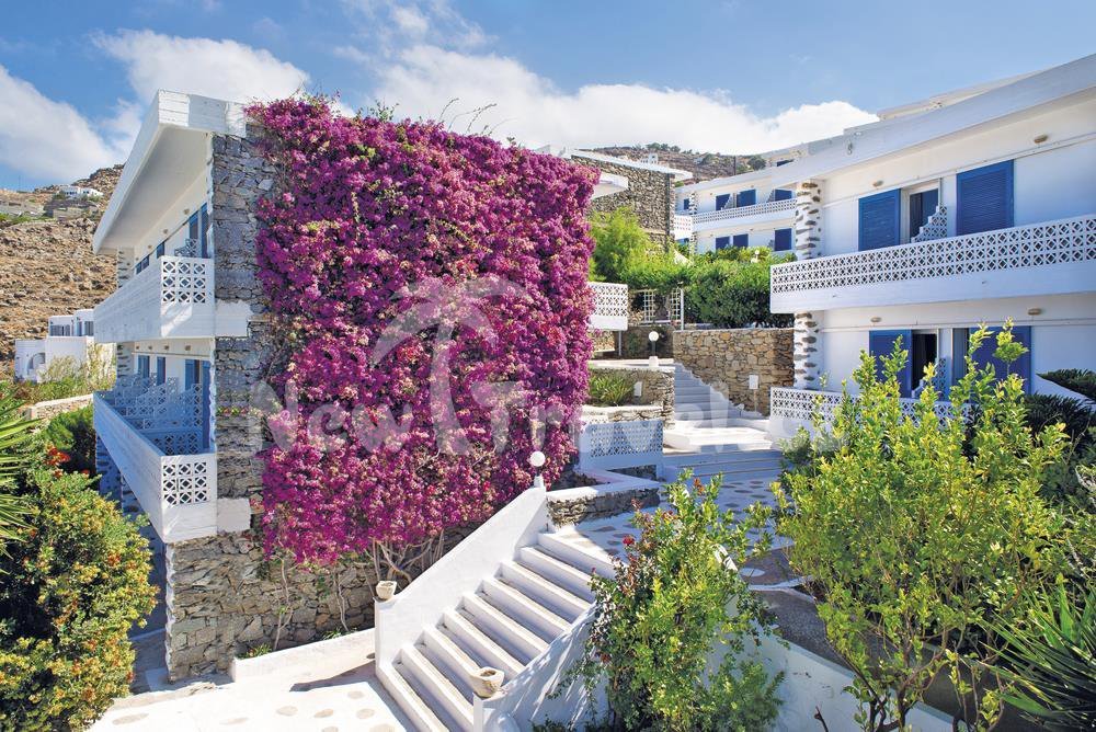 Řecko - Mykonos - Mykonos. Hotel Alkistis se nachází v blízkosti hlavního města Mykonos, cca 2,5 km od jeho centra (zastávka autobusu je 30 m od hotelu). Krásná písčitá pláž v zátoce Agios Stefanos s křišťálově čistou vodou se nachází pouze 20 m od hotelu. Letiště Mykonos je vzdáleno 5 km, přístav 1 km.