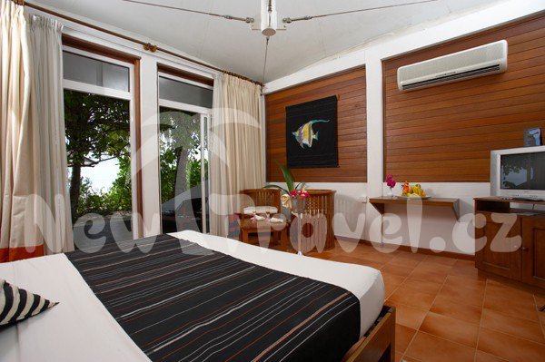 Ve všech pokojích se nachází klimatizace, koupelna se studenou a teplou vodou, minilednička, TV se satelitními programy, telefon, trezor, příslušenství na vaření kávy a čaje. Ve vodních bungalovech se nachází prosklená podlaha