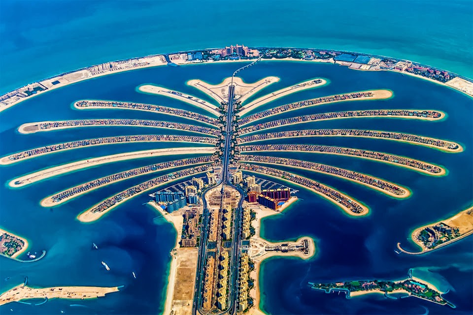 Přesto vznikla na světě celá řada umělých ostrovů – mezi nejznámější patří bezesporu ostrovy ve tvaru palmy (Palm islands – Palmové ostrovy) nacházející se u Dubaje. Tyto ostrovy byly budovány za jediným cílem, přitáhnout do Dubaje více turistů a zvýšit kapacitu pláží a hotelů. Díky umělým ostrovům se tak délka pláží prodloužila o stovky kilometrů a na každém z ostrovů měly být vybudovány nové luxusní hotely. Výstavba Palmových ostrovů začala v roce 2001 a první ostrov byl hotov již v roce 2005 (Palm Jumeirah). Mezi nejznámější stavby na tomto ostrově je hotel Atlantis.