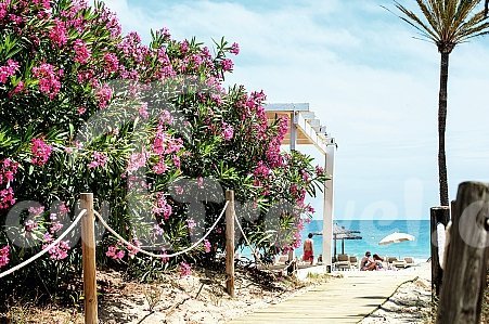 U hotelu Bahamas Ibiza se nachází vyhlášená písečná pláž Playa d'en Bossa s pozvolným vstupem přímo u hotelu. Lehátka a slunečníky.