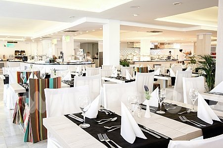 - snídaně, oběd a večeře formou bufetu v hotelu Bahamas Ibiza