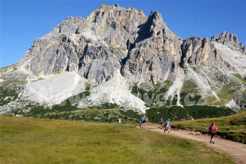 mnoho dalších třítisícových vrcholů (Tofana di Rozes, Punta Sorapiss, Monte Pelmo, Monte Civetta, Piz Boe apod.). Od lanovky se poté vydáme na cca 10 kilometrů dlouhou okružní trasu k jezeru Lagazuoi, občerstvíme se na chatě Scotoni, abychom mohli začít stoupat zpět k lanovce, která nás sveze do sedla Falzarego. Celý den zakončíme návštěvou malebného městěčka Cortina d´Ampezzo (↑ 800 m ↓ 800 m ↔ 10 km).