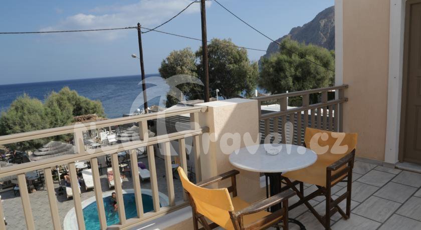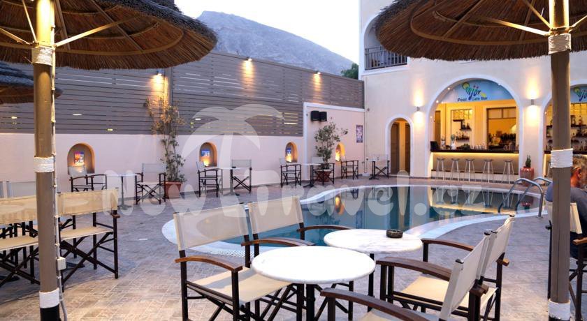 Řecko - Santorini - Kamari. Hotel Enjoy Villas leží cca 6 km od letiště a cca 8 km od hlavního města Thira (spojení linkovým autobusem, zastávka cca 150 m). V okolí hotelu Enjoy Villas najdete obchody, restaurace, taverny.