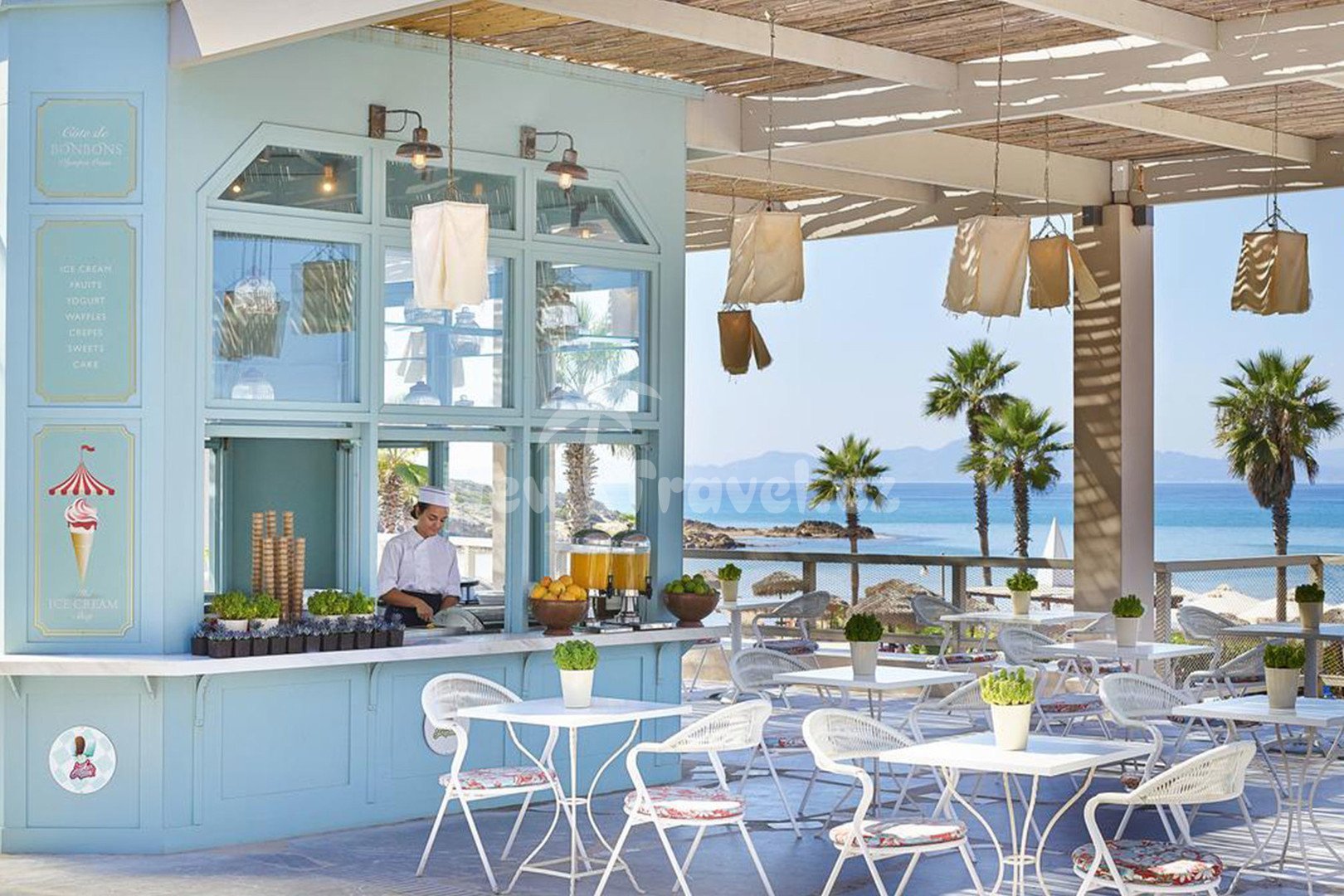 - Bungalov s bočním výhledem na moře nabízí stejné vybavení, je umístěn mimo hlavní budovu, lze rezervovat také s přímým výhledem na moře.