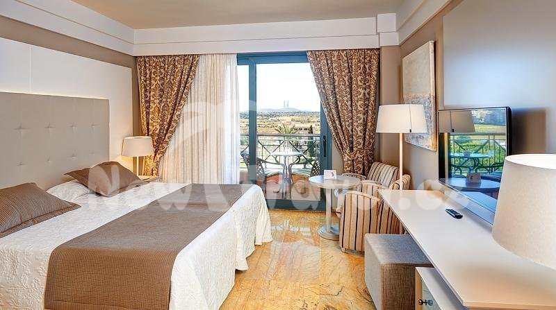 Dvoulůžkové pokoje hotelu Hipotels Hipocampo Palace & Spa s možností přistýlky, koupelna s WC, TV/SAT, telefon, vysoušeč vlasů, trezor, klimatizace, balkón, bezberiérové pokoje (na vyžádání)
