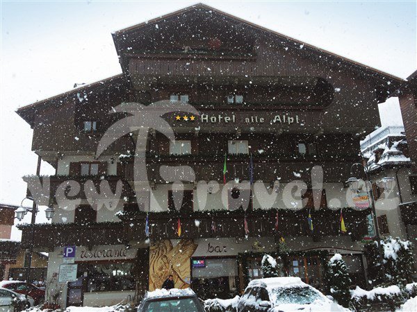 Recepce hotelu Alle Alpi, bar, restaurace, bar, kavárna, společenská místnost s TV, WiFi ve většině spol.prostor, výtah, lyžárna, parkoviště, garážová stání.