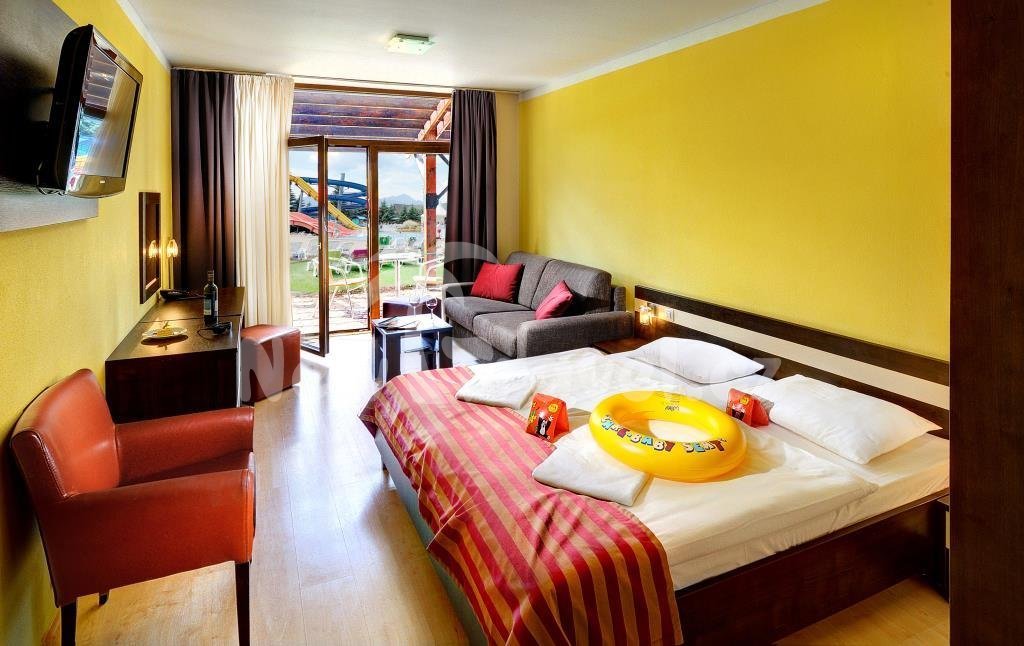 Dvoulůžkové pokoje v hotelu Bešeňová (A2A/A3A): trezor, telefon, LCD-TV s pay-tv systémem, radio, minibar, set pro přípravu čaje a kávy, fén, sprcha a WC.