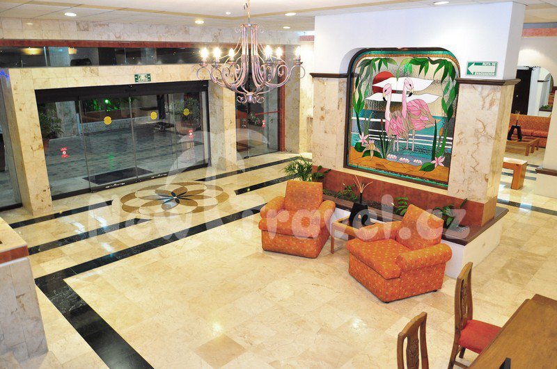 Mexiko - Cancún. Hotel Flamingo Cancún, starší komorní budova klasického hotelu střední velikosti je situována v ideální poloze v centrální části hotelové zóny Cancún na nejlepším úseku pláže. Přímo naproti hotelu Flamingo Cancún je moderní nákupní centrum. V pěší vzdálenosti od centra hotel. zóny a cca 11 km do centra střediska.