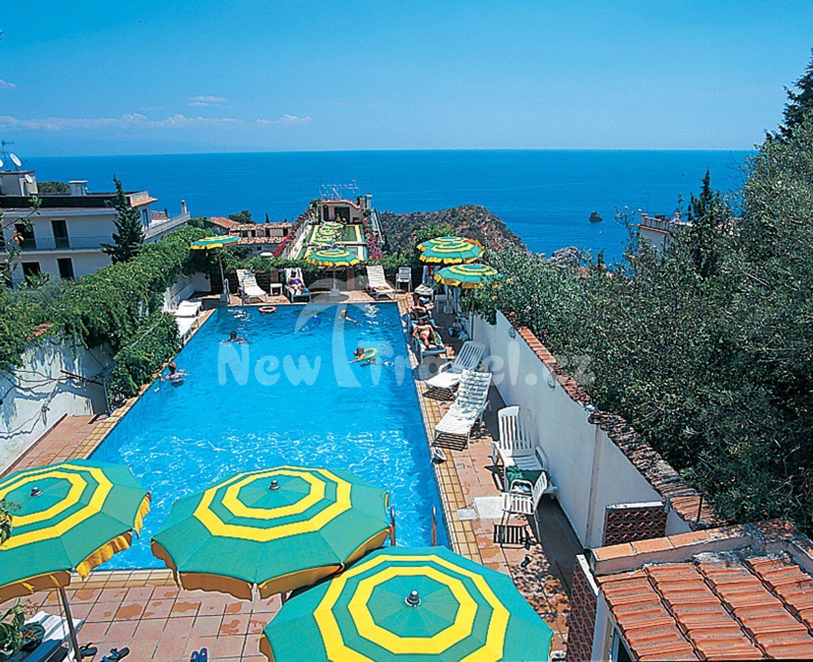 Itálie - Sicílie - Taormina. Krásný hotel Ipanema v blízkosti lanovky do města Taormina možnost vstupy do Ipanema Beach Clubu s velkým bazénovým komplexem. Hotel Ipanema leží u pobřežní promenády. Obchody a restaurace v bezprostřední blízkosti. K lanovce do města Taormina cca 200 m.