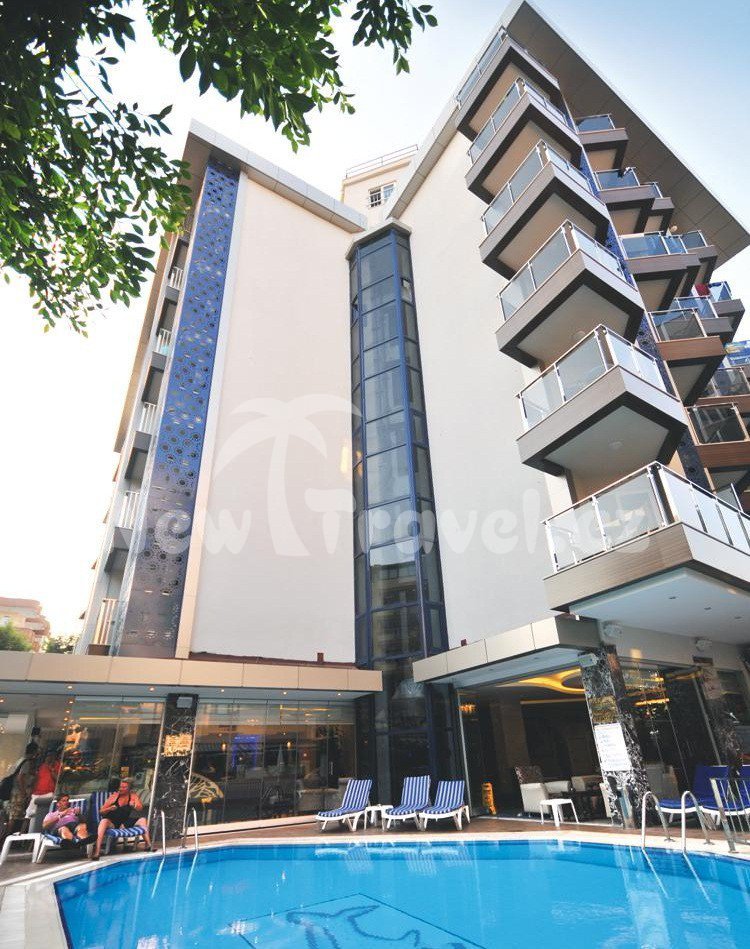 Turecko - Alanya. Hotel Kleopatra Micador se nachází v tiché části střediska Alanya, ve vzdálenosti cca 1,5 km do centra města a cca 125 km od letiště v městě Antalya.