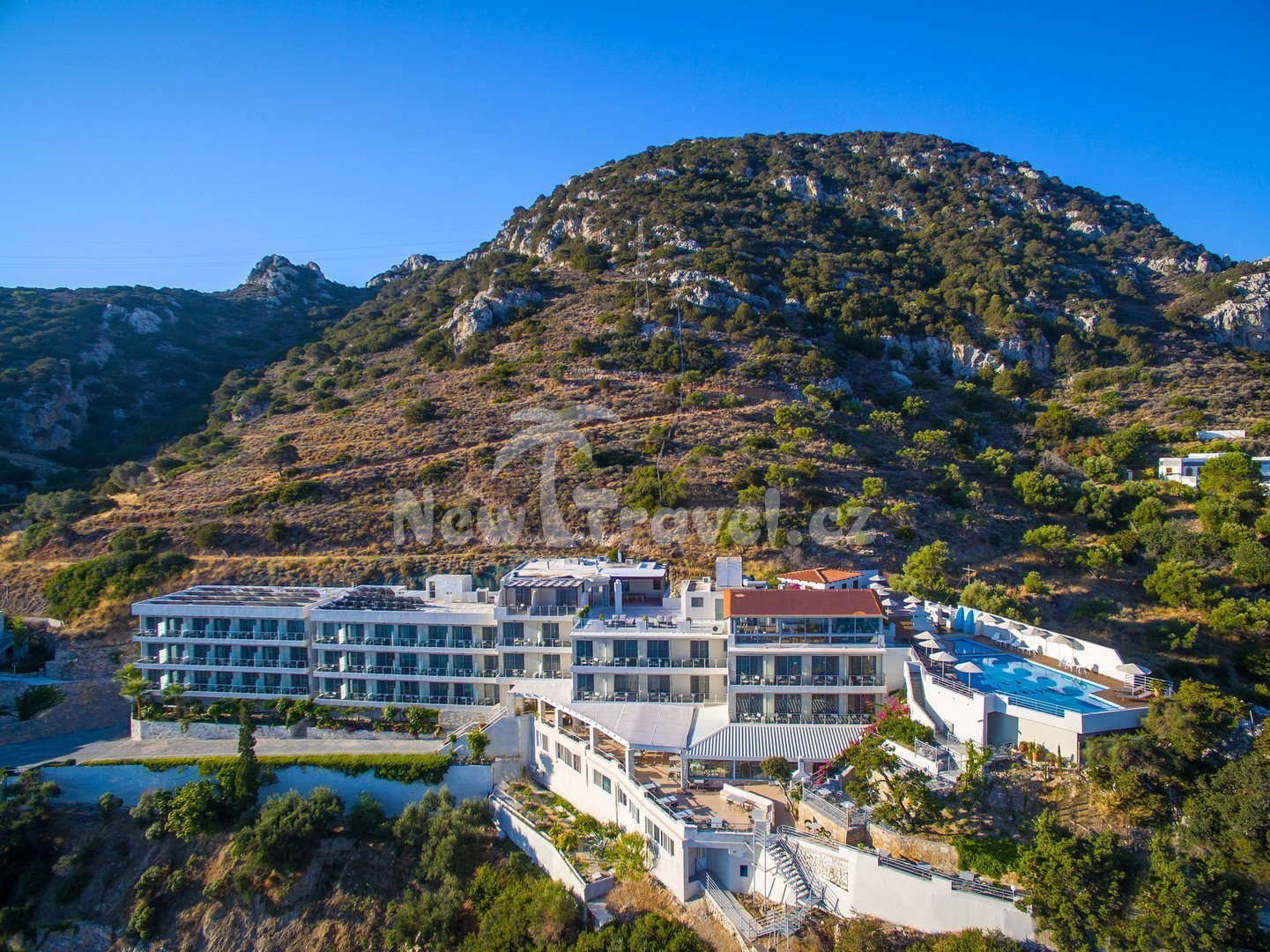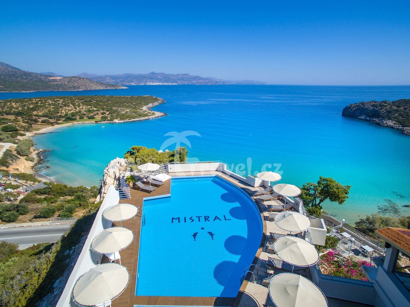 Řecko - Kréta - Agios Nikolaos. Hotel Mistral Mare se nachází na svahu, cca 200 m od pláže Golden Beach s krásnými výhledy do okolí, cca 9 km od letoviska Agios Nikolaos, cca 72 km od mezinárodního letiště v Heraklionu.