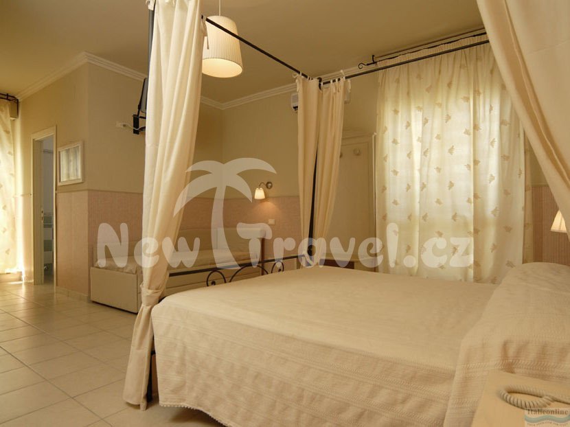 Dvoulůžkové pokoje hotelu Mocambo s možností až 2 přistýlek jsou vybaveny klimatizací, koupelnou se sprchou, WC, sejfem, TV, telefonem, balkonem.