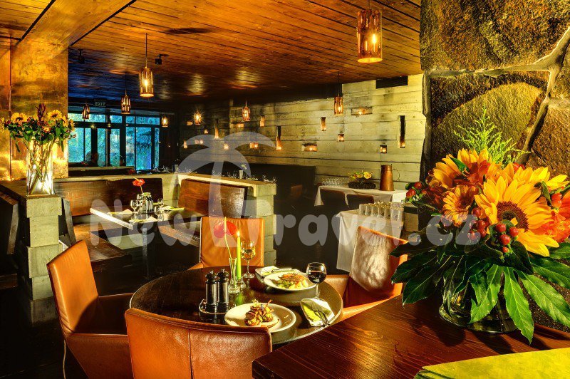Snídaně jsou podávány bufetovým způsobem, možnost celodenního stravování, velký výběr krajových jídel i specialit výběrem a la carte. V zimním období je příjemné posezení ve vnitřní hale u hořícího krbu.