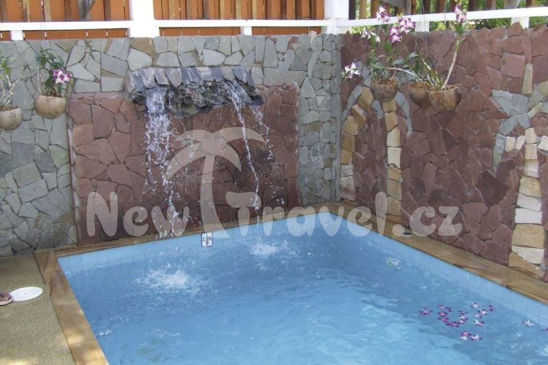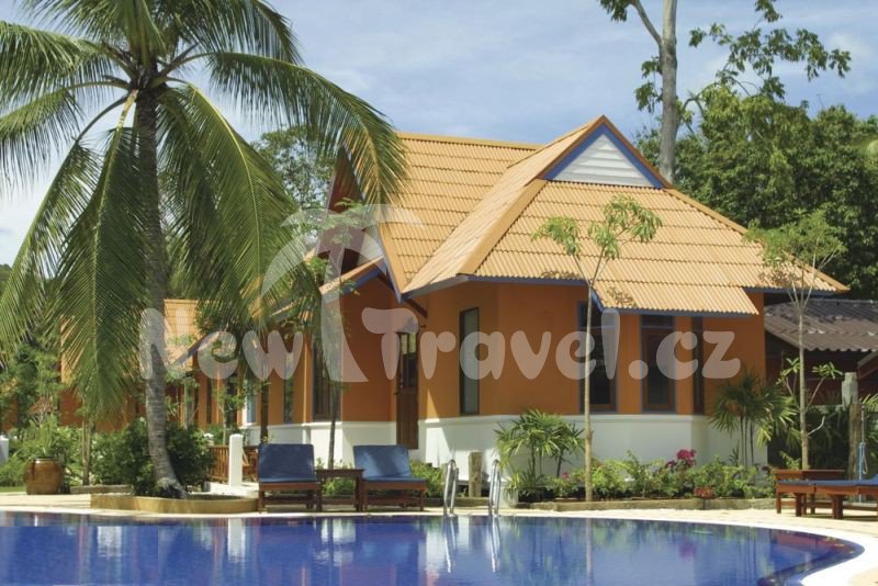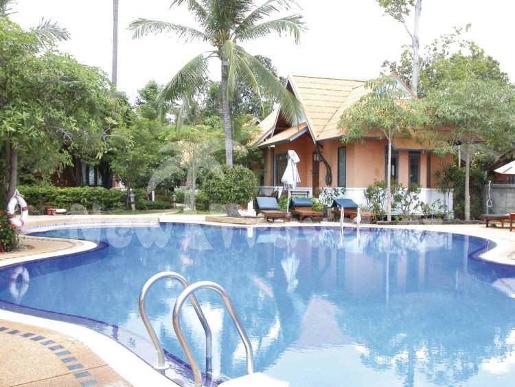 Menší hotel Lawana Resort v thajském stylu, umístěný do tropické zahrady, ubytování v bungalovech. Recepce, restaurace, bar, bazén s lehátky a slunečníky, plážové osušky, hotelová lehátka na pláži.