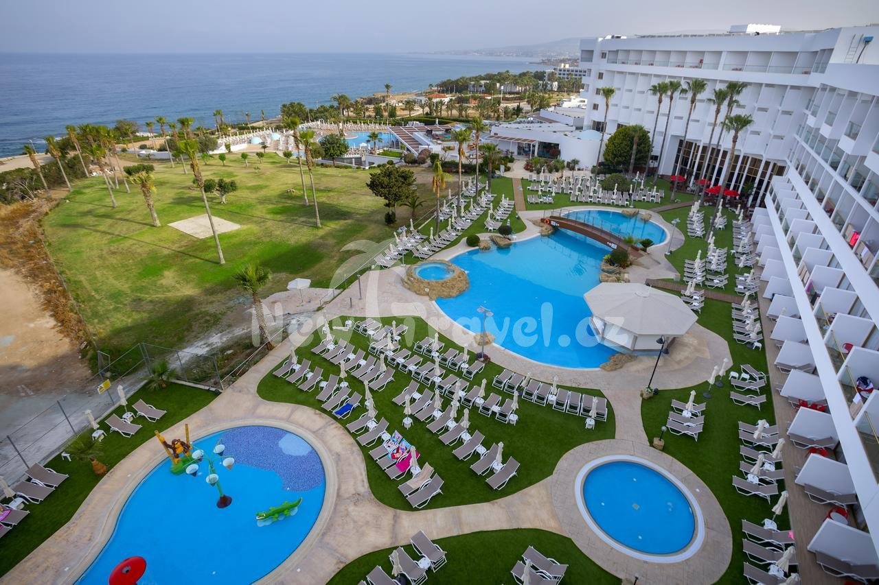 Kypr - Paphos. Hotel Leonardo Laura Beach & Splash Resort - tato vynikající destinace vhodná pro rodiny s dětmi se nachází na okraji Paphosu, pouze 100 od pláže a rozprostírá se na ploše více než 20 000 m² s krásnou zahradou, má vlastní vodní park Splash, kino, hernu, klub určený výhradně pro dospívající, dětský klub a živou zábavu každý den. Leonardo Laura Beach & Splash Resort známý svým zábavným rodinným aquaparkem Splash Waterpark - jedno z pěti nejlepších míst v Kypru!