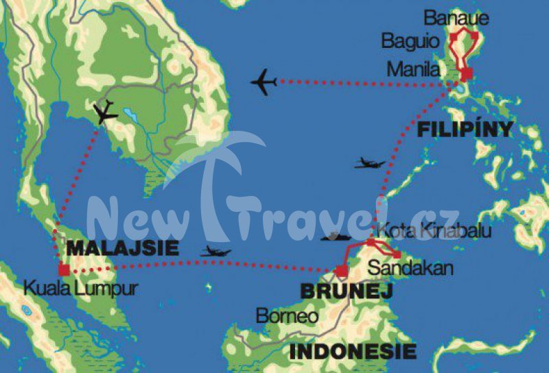 Malajsie, Brunej, Borneo, Filipíny