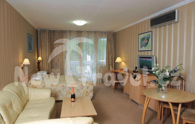 - Apartmány: 2 místnosti, cca 35 m2, ložnice a obývací ložnice, bio postele, telefon, TV, radio, trezor, vana, WC, ručníky, topení, minibar, rozkládací gauč pro další 2 osoby.