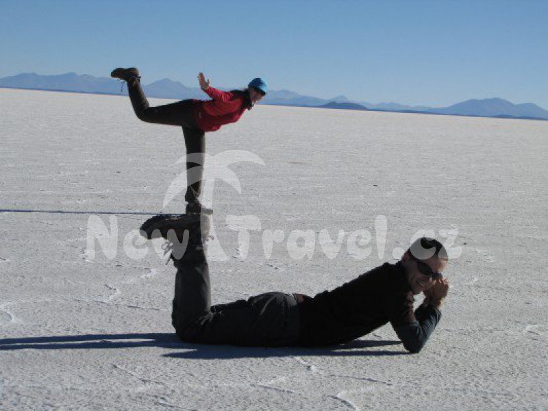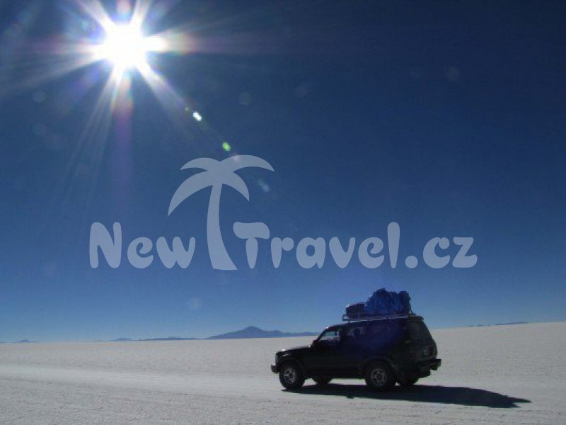 Přesun bolivijskou krajinou do Uyuni k našim džípům a třídenní přejezd v džípech úchvatnou vysokohorskou krajinou Bolívie, laguny různých barev, zelená laguna Verde, červená laguna Colorada, bílá laguna Blanca, plameňáci, sopky ... Vyvrcholení programu – Salar de Uyuni – bílá solná planina, největší svého druhu na světě, ve výšce 3 650 m. Bizarní krajina, na jejíž vychutnání potřebujete ty nejkvalitnější brýle. Isla del Pescado – ostrov v bílém moři soli porostlý obrovskými kaktusy. Tipnete si jejich věk? Budeme procházet jedinečnou oblastí jihoamerického kontinentu daleko od ruchu měst a civilizace, jejíž jedinými připomínkami budou vzácné osady vysokohorských indiánů. Uvidíme gejzíry Sol de Manan ve výši 4800 m. Zláká Vás koupání v horkých pramenech u zamrzlé laguny? Přechod hranice do Chile a návrat do civilizace.