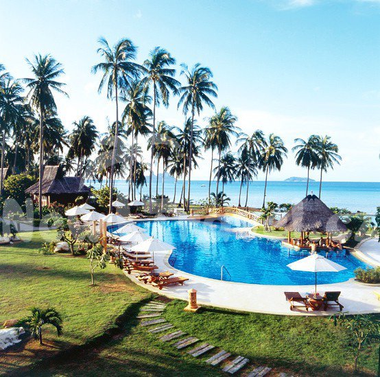 Thajsko - Phi Phi Island. Rozlehlý hotel PHI PHI ISLAND VILLAGE BEACH RESORT & SPA postavený formou bungalovů v tradičním thajském stylu se rozprostírá v nádherné tropické zahradě s kokosovými palmami na ploše 28 hektarů přímo na nádherné pláži zálivu Loh Ba Gao.