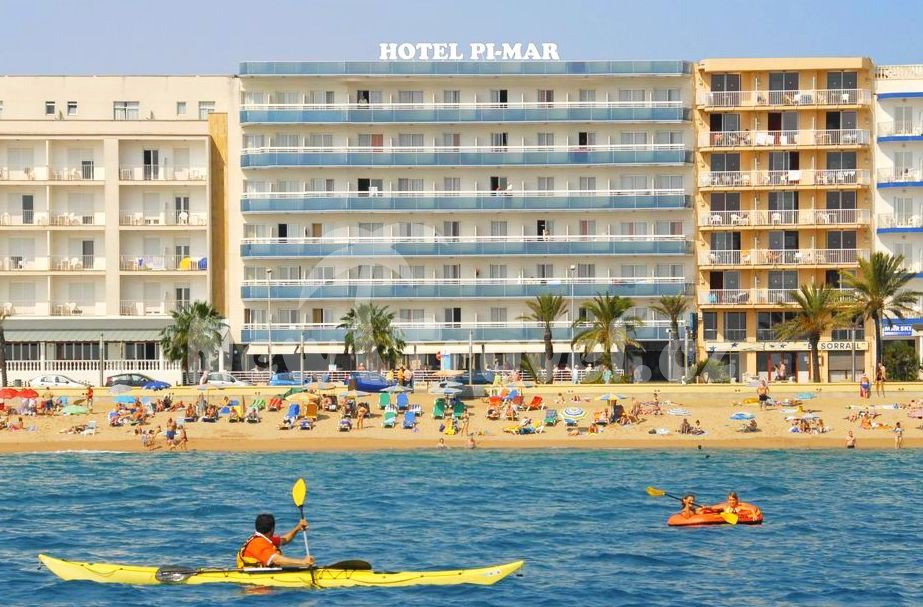 Španělsko - Costa Brava - Blanes. Hotel Pimar je oddělen jen pobřežní promenádou od pláže S`Abanell, která je nejdelší pláží na Costa Brava, 250 m od centra městečka Blanes.