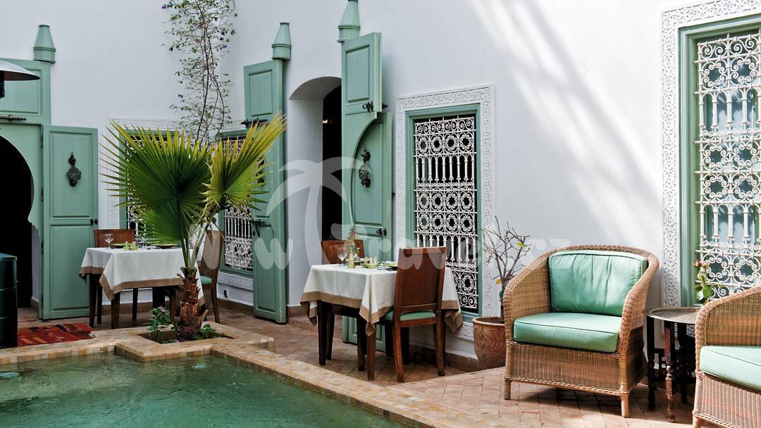 Maroko - Marrakesh. Hotel Riad Les Hibiscus se nachází přímo v Medině (starém městě Marakéše) v malé postranní uličce. Známé náměstí Jemna el Fna s vyhlášeným trhem a další pamětihodnosti města jsou od hotelu vzdáleny pouhých 5 minut.