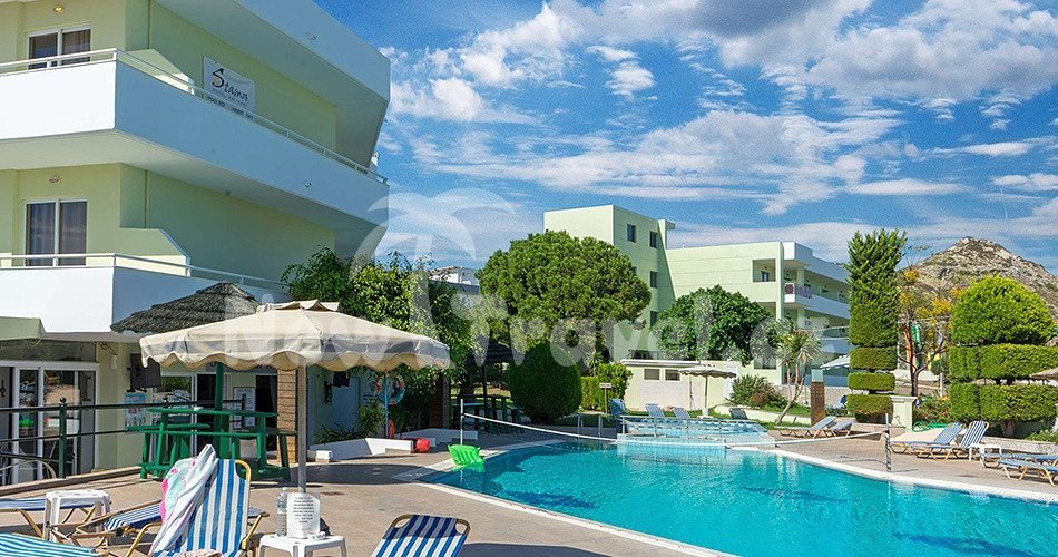 Řecko - Rhodos - Faliraki. Hotel Stamos se nachází v oblíbené turistické oblasti Faliraki, která je známá pro krásnou zlatou písečnou pláž. Letovisko, je známé nejen krásnými plážemi a bohatým nočním životem, ale především pohostinností místních obyvatel. Hotel se nachází v klidné oblasti, avšak při krátké procházce najdete obchody se suvenýry, restaurace, taverny a kavárny.