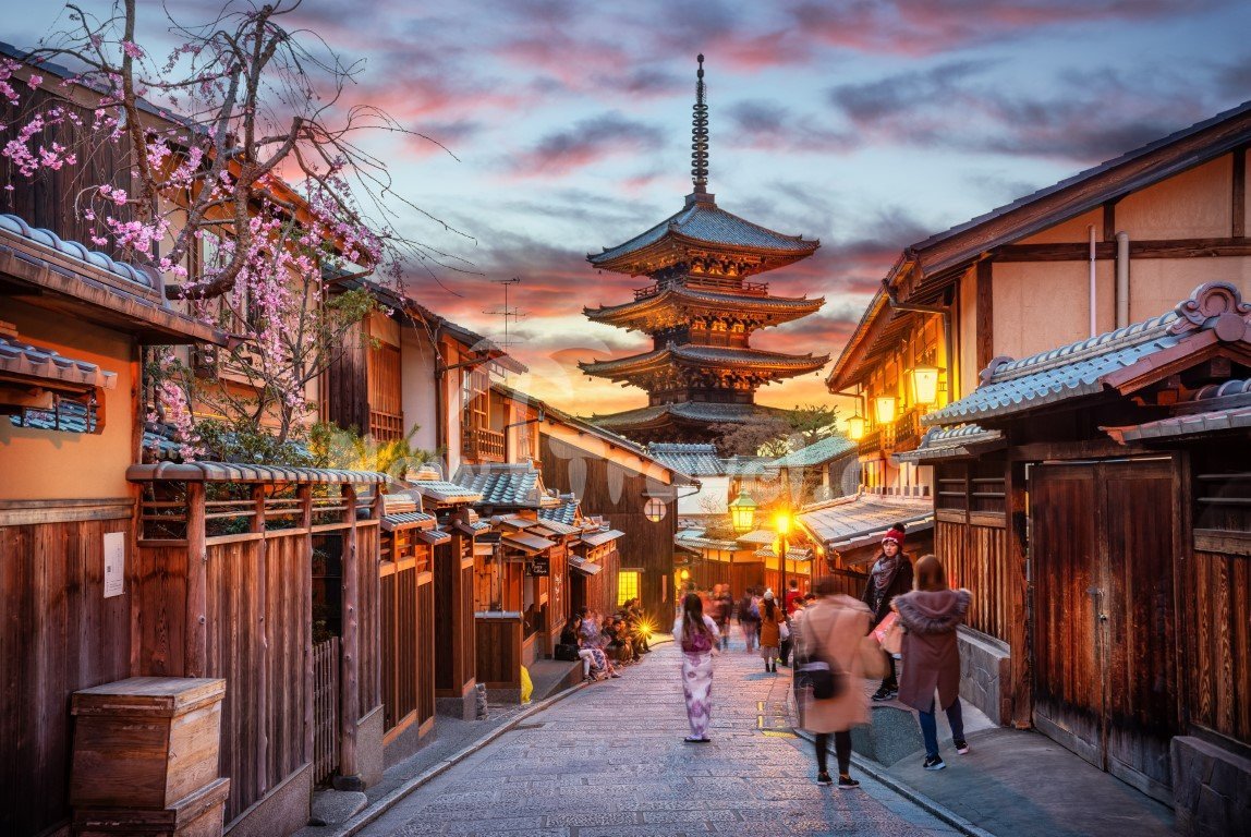 8. den: Po snídani pokračování v prohlídce Kyota a jeho pamětihodností – bývalé sídlo císaře hrad Nindžo (UNESCO ) se dvěma okruhy opevnění, palácem Ninomaru a palácem Honmaru a nádhernými zahradami. Odjezd do tržnice Nishiki – oblíbené místo milovníků japonské kuchyně, stovky metrů krytých uliček s obchody a s možností nákupů surovin, koření, ale i suvenýrů…Oběd v místní restauraci. Svatyně Fushimi Inari – jedna z nejdůležitějších šintoistických svatyní s tisícovkami červených bran Torii. Chrám Kiyomizu ( chrám Čisté vody ) – nejslavnější chrám Japonska ( UNESCO ), uprostřed nádherné přírody se svatyní Jishu zasvěcené božstvu lásky, kouzelnými prameny vodopádu Otowa, třípatrovou pagodou Koyasu,…, návrat do hotelu. Nocleh.