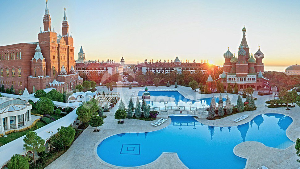 Turecko - Lara Kundu. Dovolená v hotelu Asteria Kremlin Palace, vdáleném 20 km od mezinárodního letiště Antalya a přímo v oblasti Kundu. Hotel Wow Kremlin Palace je postaven ve stylu ruského Kremelského paláce.